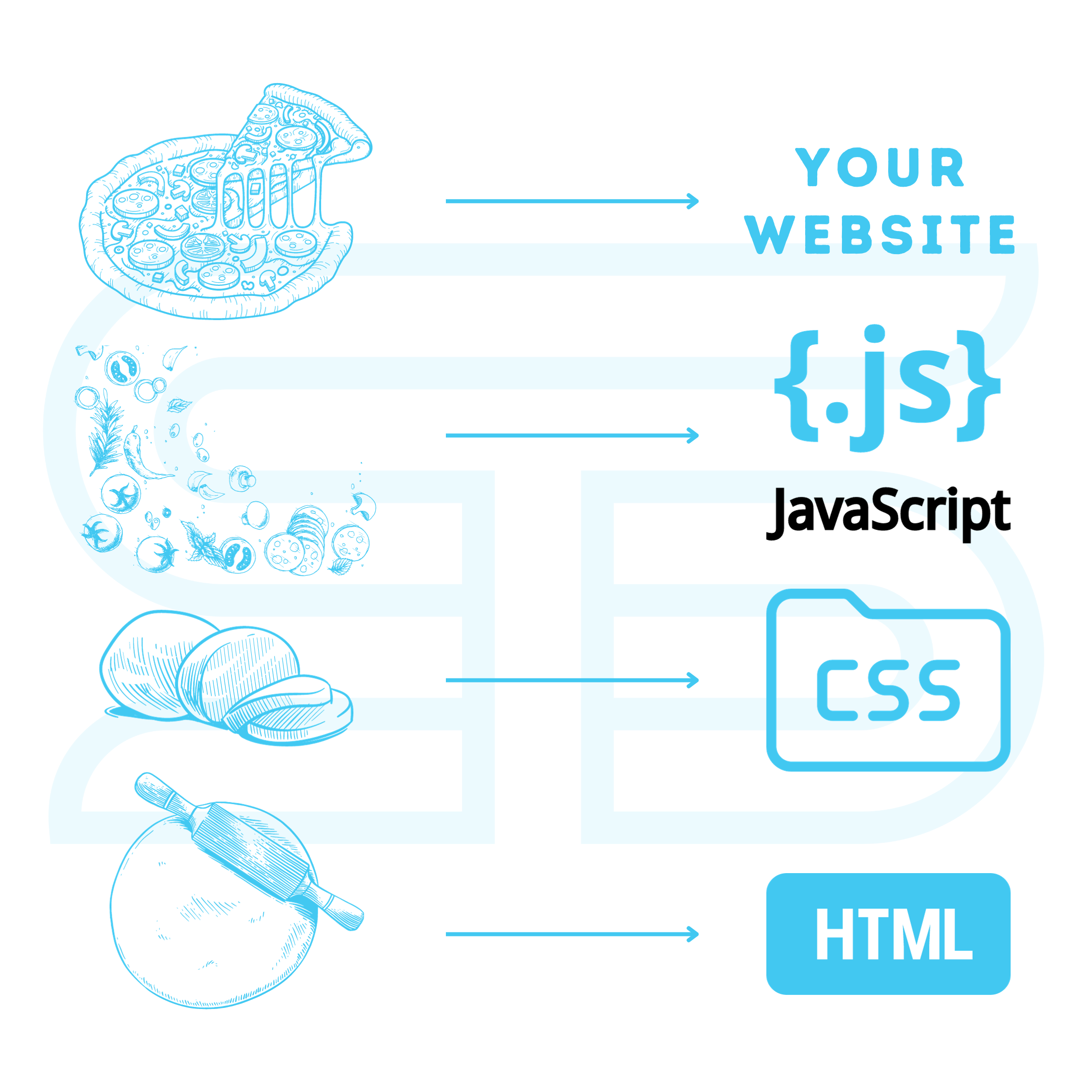 Ca să înțelegem mai bine conceptele, hai să luăm drept exemplu prepararea unei pizza și procesul creării unui website și o să vezi, în cele ce urmează, cum fiecare „felie” de cod contribuie la creația unui site memorabil. Ți-ai pus șorțul?